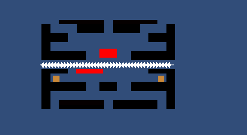 The aim of the game is to essentially trap the other player by placing a duplicate of yourself to block their path. once the player is blocked and cannot move, the moving platform (White triangles in middle of screen) will destroy the player if they come in contact with it.