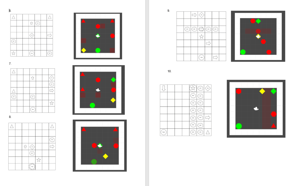 These are all of the ten levels I created for this game. I have added in my obstacle and have tested each level to see if the player can actually win the game (they can win the game in every single level). Some levels are much easier than others, this might be due to the fact that to begin with, the level provided was impossible (no hyperbole used). Find out how I knew it was impossible to win in the next post.